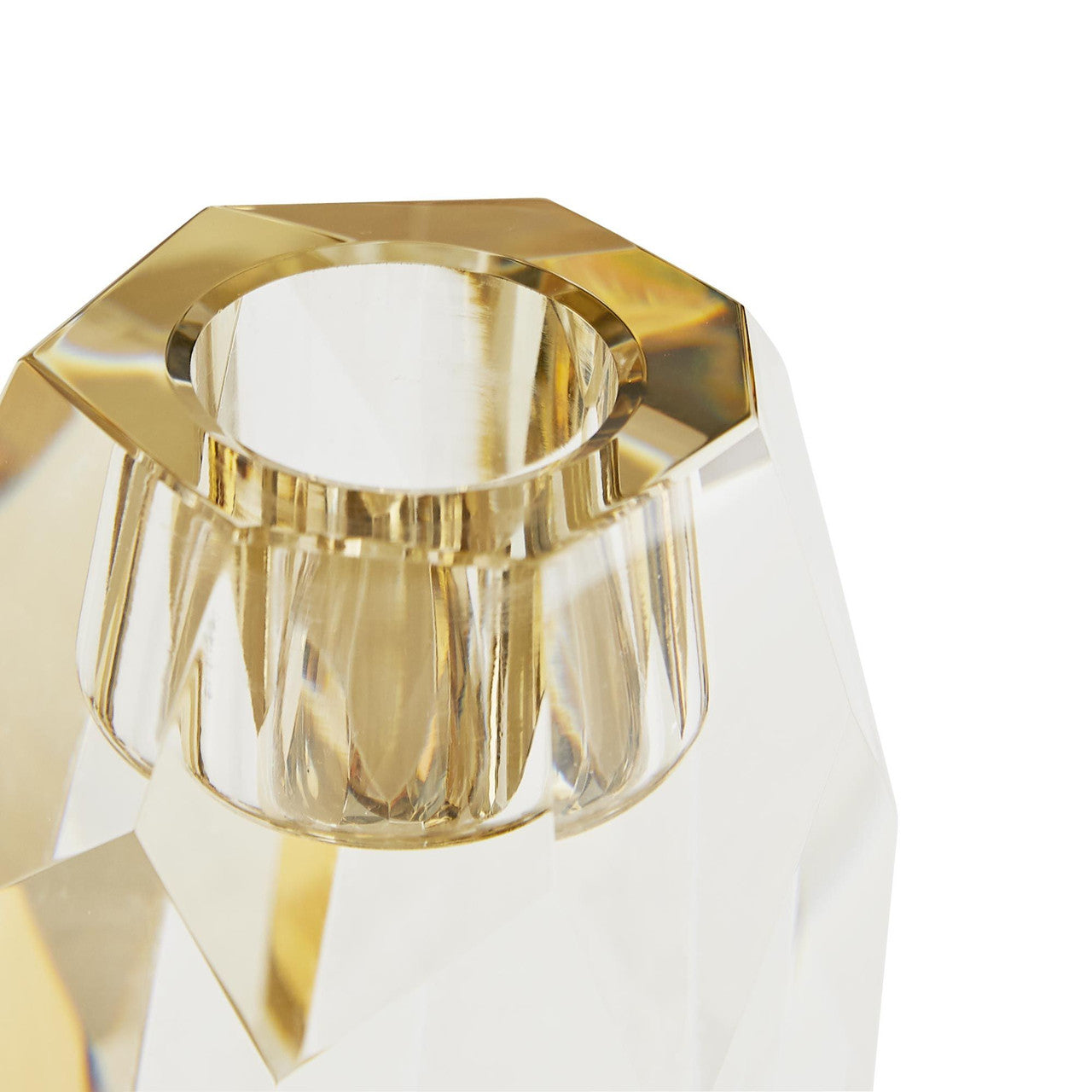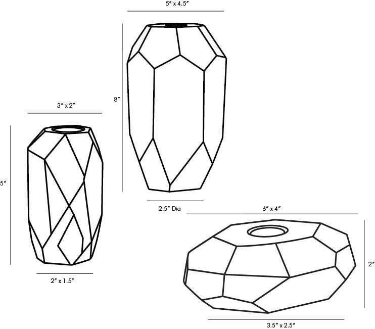 Inspired by the enthralling designs of our Gemma Collection, we've created this tri-set of crystal candleholders. The champagne and smoke finishes on the Diametermond-like facets creates an arresting blend of elements and colors. The defined edges are highlighted by the contents of a taper candle. When grouped together, this set creates quite the lustrous trifecta.