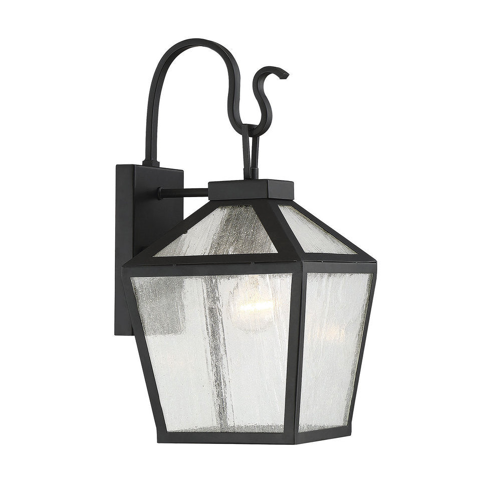 The traditional charm of vintage lanterns blends beautifully with streamlined, contemporary appeal in this Savoy House Woodstock 1-light outdoor wall lantern. Everyone who enters your home will feel welcomed and appreciate its classic style. Finished in matte black with clear seeded glass panes that add wonderful textural interest. The 16" high by 8" wide size makes it easy to place multiples of these lanterns on the walls of your porch, patio, sunroom, garage or pergola. Uses 1 standard size bulb of up to 60 watts. Wet area rated.